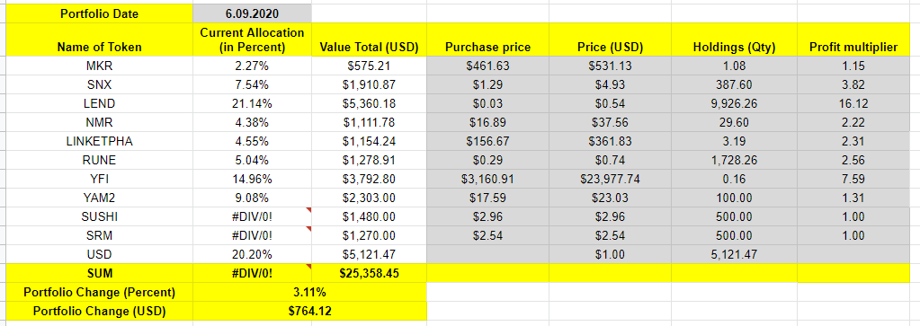 We have backdated these picks into a TOKEN VALLEY DeFi FUND, which you can follow. You can view all holdings on this spreadsheet. Each newsletter, we will add a new DeFi token to the mix. We are now up 3% from our last newsletter 2 weeks ago.